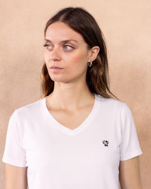Camiseta Antimanchas Cuello V Blanca